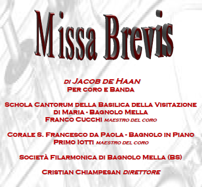 Missa Brevis di Jacob de Haan per banda e coro Pubblicato il 4 Maggio 201717 Settembre 2019 di Lisa Cardinali Pubblicato in Senza categoria.