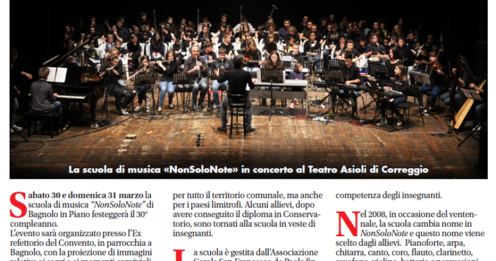 Parlano di noi… 30 anni di musica Pubblicato il 31 Marzo 20199 Aprile 2024 di Giulia Così parlano di noi alla viglia dei due giorni di festeggiamenti del compleanno della scuola sul settimanale “La Libertà”. Pubblicato in Parlano di noi....