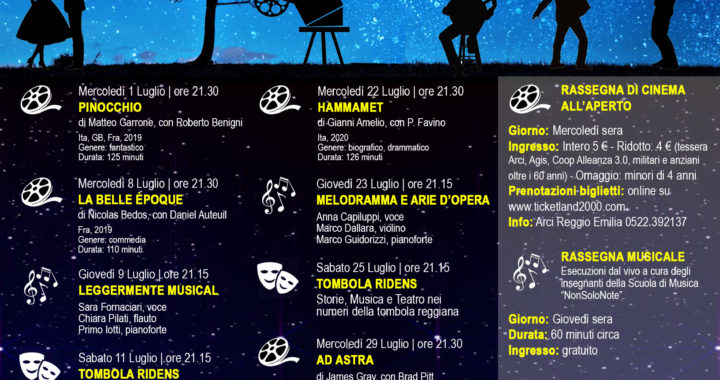 Rassegna estiva 2020 Pubblicato il 1 Luglio 20201 Luglio 2020 di Giulia Questa estate non ci fermiamo! Serate di musica, cinema e teatro tutte da scoprire! Pubblicato in Senza categoria.